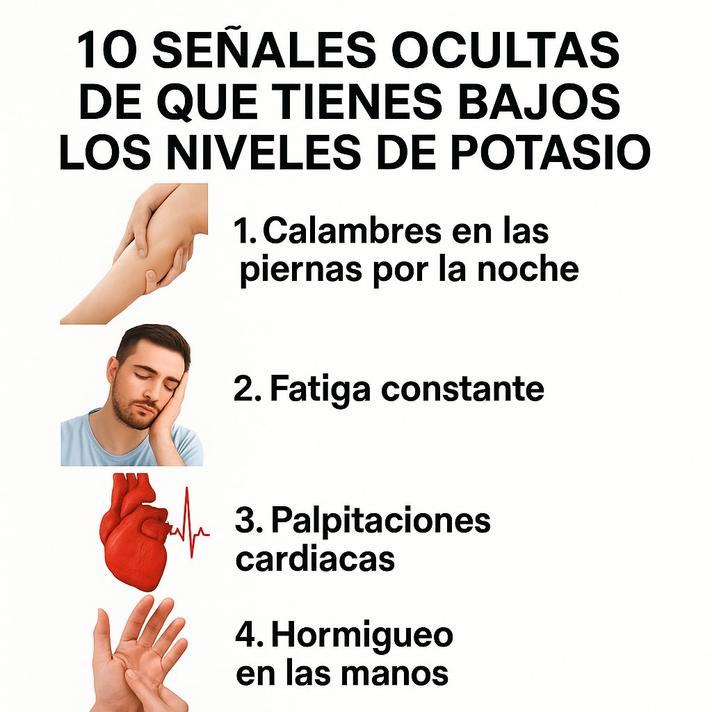 Reconocer los signos tempranos de la deficiencia de potasio (hipopotasemia) es fundamental para evitar complicaciones de salud. Algunos síntomas son claros, mientras que otros pasan inadvertidos o se confunden con otros problemas.