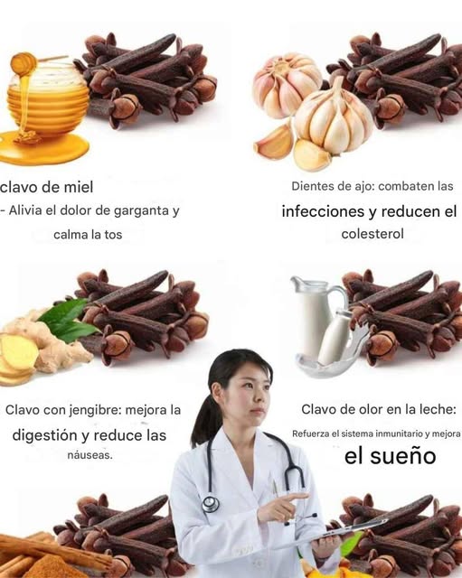 ¿Por qué?: El ajo fortalece el sistema inmunitario y reduce el colesterol LDL; el clavo potencia su efecto antibacteriano.
