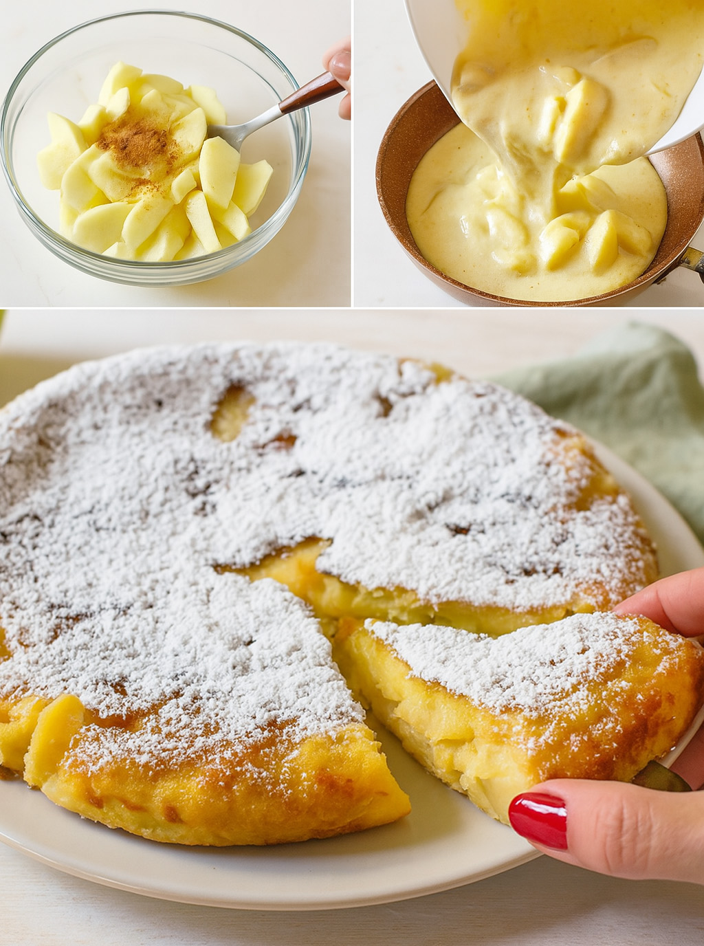Bueno, pues. Esta es una de esas recetas que no sabes cómo llamar… porque no es exactamente un pastel, ni una frittata clásica, ni siquiera un panqueque gigante. Pero está buena. Una de esas cosas sencillas que te solucionan el desayuno o te miman como merienda. Y se hace en sartén, sin horno (lo cual en verano es una bendición).