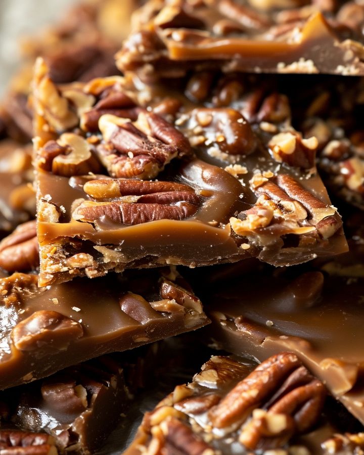 Imagina hincarle el diente a una deliciosa mezcla de ricas y mantecosas nueces pecanas y dulce y esponjoso caramelo, todo sobre una crujiente y delicada capa de chocolate. Inspirada en el clásico pastel de nueces pecanas, esta corteza de pastel de nueces pecanas es una delicia que te hará agua la boca y te encantará. Ya sea que te reúnas con familiares y amigos para una ocasión especial o simplemente tengas antojo de un postre delicioso, esta receta sin duda se convertirá en un favorito en tu cocina.