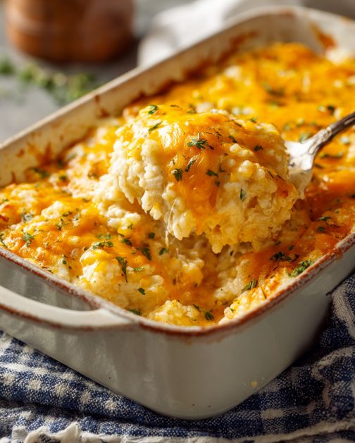 Esta cazuela de arroz con queso de 3 ingredientes es el tipo de plato acogedor y sencillo que se siente como un cálido abrazo al final de un largo día. Está inspirada en las sencillas cazuelas con las que muchos crecimos aquí en el Medio Oeste: nada sofisticado, solo comida auténtica y reconfortante que llena el estómago y atrae a todos a la mesa. Solo necesitas arroz, queso y una base de sopa cremosa, pero aun así sabe como algo en lo que te pasaste toda la tarde. Es perfecta para noches ajetreadas entre semana, comidas compartidas en la iglesia o la escuela, o esas tardes en las que quieres algo calentito y con queso sin una larga lista de compras ni muchos platos.