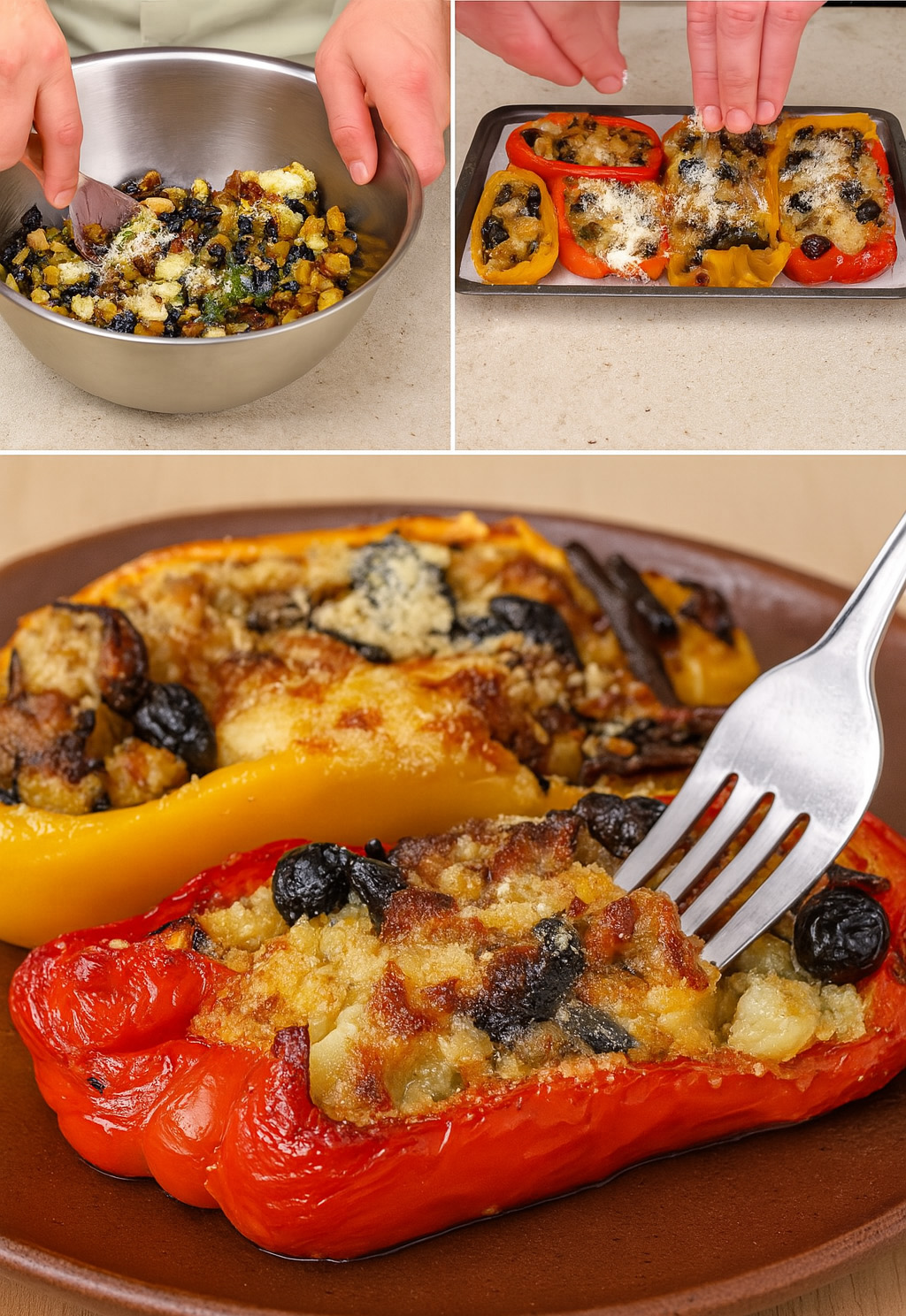 Esta es una de esas recetas que evocan al instante el verano y las cenas ruidosas. Los pimientos rellenos, o como se les llama en Nápoles, puparuoli ‘mbuttunati, son uno de esos platos que parecen sencillos, pero cuando se preparan con calma y los ingredientes adecuados… te das cuenta de que son casi mejores que un plato de carne.