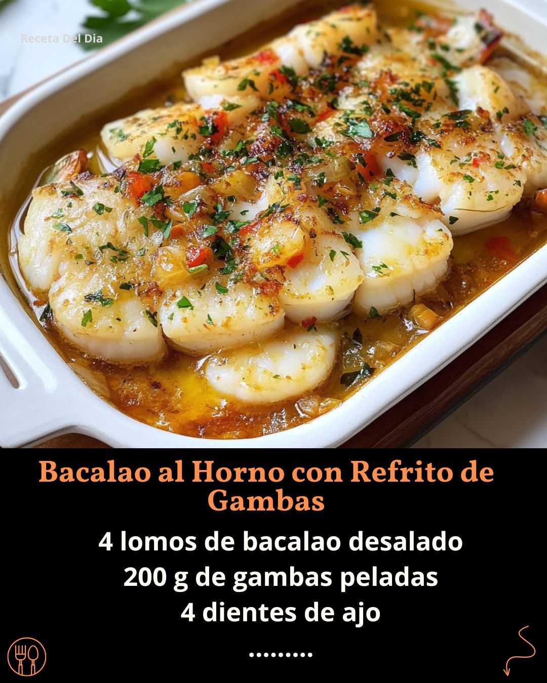 El bacalao al horno con refrito de gambas es un plato clásico que combina la suavidad del bacalao desalado con el sabor intenso del refrito, una mezcla de aceite de oliva, ajos y gambas. Este plato no solo destaca por su sencillez, sino también por ser saludable y delicioso, ideal para compartir en reuniones familiares o cenas especiales.