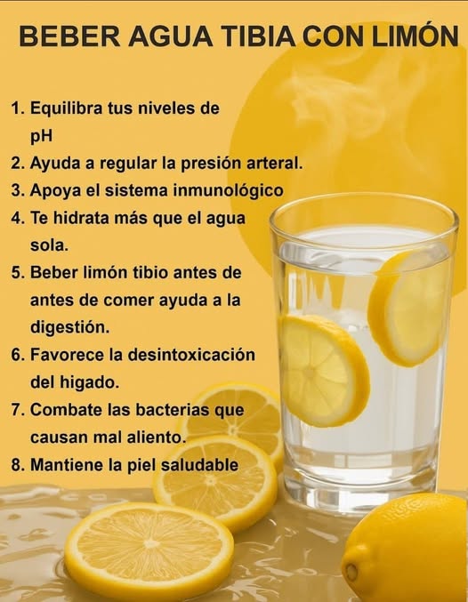 Beneficios de beber agua tibia con limón cada día October 28, 2025 by zakaria El agua con limón actúa como un diurético suave, ayudando a eliminar toxinas y desechos del organismo. Aliento fresco: El limón puede ayudar a refrescar el aliento y aliviar problemas bucales. Hidratación: ver continúa en la página siguiente Continua en la siguiente pagi Pages: 1 2