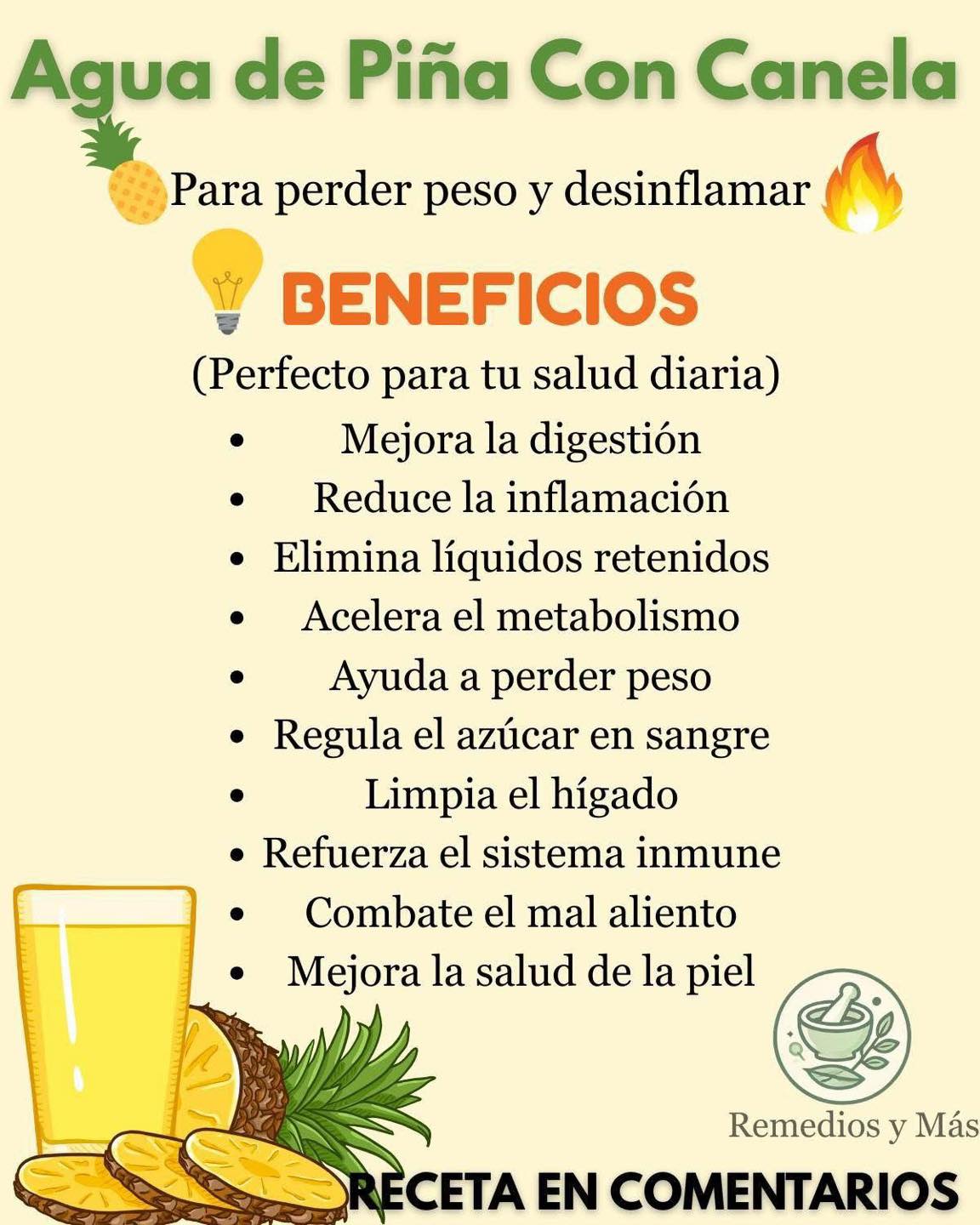 El agua de piña con canela es una bebida refrescante, deliciosa y llena de beneficios para la salud. Es perfecta para mantenerse hidratado en los días calurosos, mejorar la digestión y hasta apoyar la pérdida de peso. Su preparación es sencilla y rápida, además de que aprovecha la cáscara de la piña, evitando desperdicios.