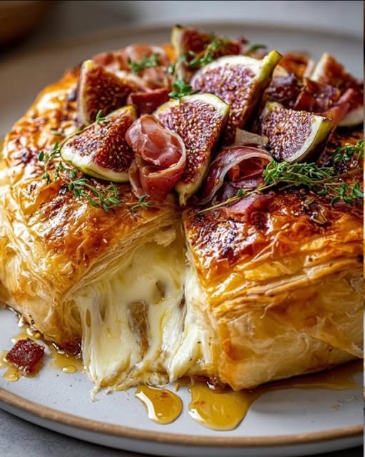 Una entrada elegante y deliciosa perfecta para ocasiones especiales. Por fuera, una costra crujiente y dorada; por dentro, queso brie cremoso con el dulzor de la miel, la intensidad del higo y el toque salado del prosciutto. Ideal para compartir y acompañar con vino.