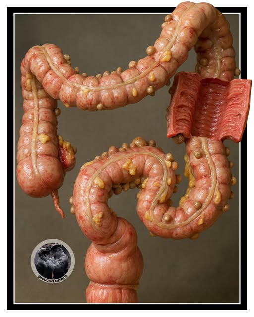 Lo que ves aquí es un colon, pero no es un colon sano: tiene divertículos.