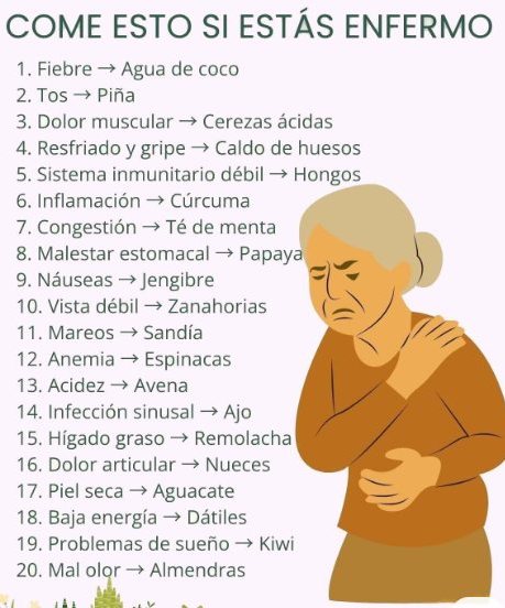 Cuando el cuerpo se enferma, muchas veces recurre a medicamentos para aliviar los síntomas. Sin embargo, existen alimentos naturales que, gracias a sus propiedades, pueden ayudar a mejorar dolencias comunes y fortalecer el sistema inmunológico. Desde la fiebre hasta la falta de energía o el insomnio, la naturaleza nos ofrece aliados poderosos que podemos incorporar fácilmente en la dieta diaria.