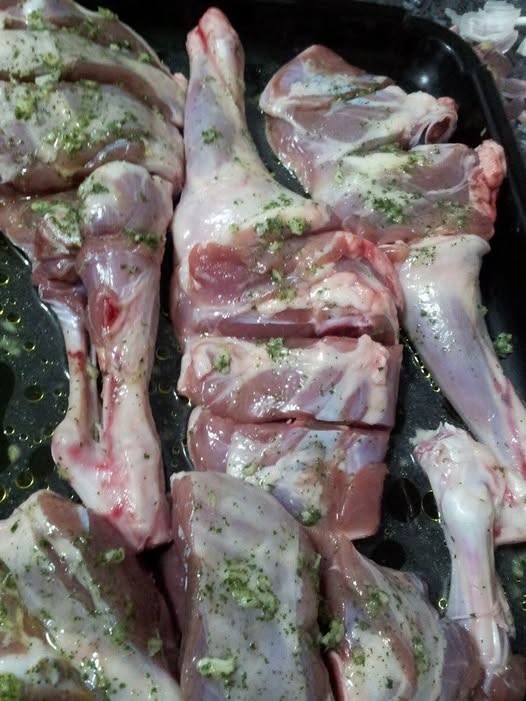 1 cordero lechal (cortado en cuartos: piernas y paletillas por un lado, falda de chuletas por otro)