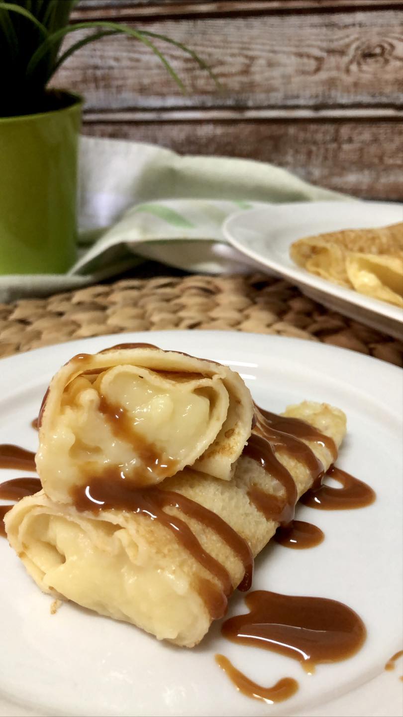Son increiblemente fáciles y quedan deliciosos en cualquier ocasión, ya sea como postre o merienda. Vamos con la receta de estos deliciosos crepes de crema pastelera y dulce de leche.