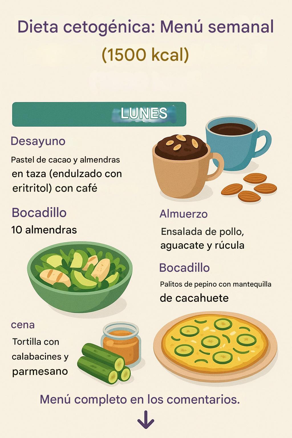 La dieta cetogénica es una dieta baja en carbohidratos y alta en grasas saludables diseñada para inducir un estado de cetosis en el cuerpo, donde quema grasa como principal fuente de energía. En esta versión de 1500 kcal, ofrecemos un menú sabroso y variado, con un desayuno dulce pero apto para la dieta cetogénica, y mantenemos la ingesta diaria de azúcar por debajo de 35 gramos (incluidas las presentes de forma natural en los alimentos).