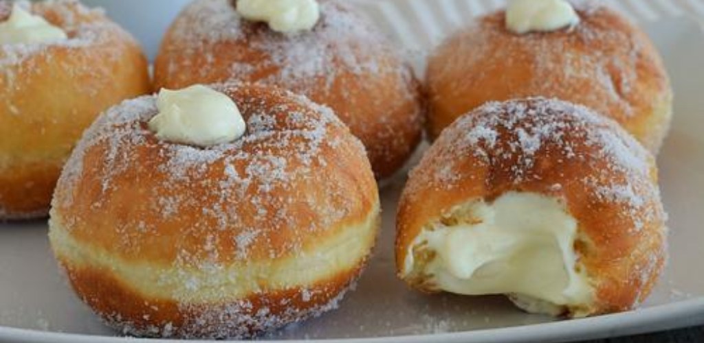 Donas con crema diplomática italiana, ¡donas con levadura irresistibles! Muy húmedas, sabrosas y cremosas, son fáciles de hacer. Obviamente, puedes rellenarlas con lo que quieras, pero la crema diplomática italiana (solo mezcla la crema pastelera con nata montada azucarada) es perfecta. La receta es muy sencilla, aunque hay que esperar a que suban. Puedes freírlas o hornearlas.