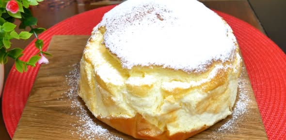 Se prepara en solo 10 minutos, se hornea como máximo una hora y se deja enfriar, y disfrutarás de un postre extraordinario. Suave y esponjoso, hecho con huevos ligeramente batidos y yogur, se asemeja a un suflé. De hecho, ¡podríamos considerarlo un postre “inflado”! No contiene gluten y es perfecto para celíacos.