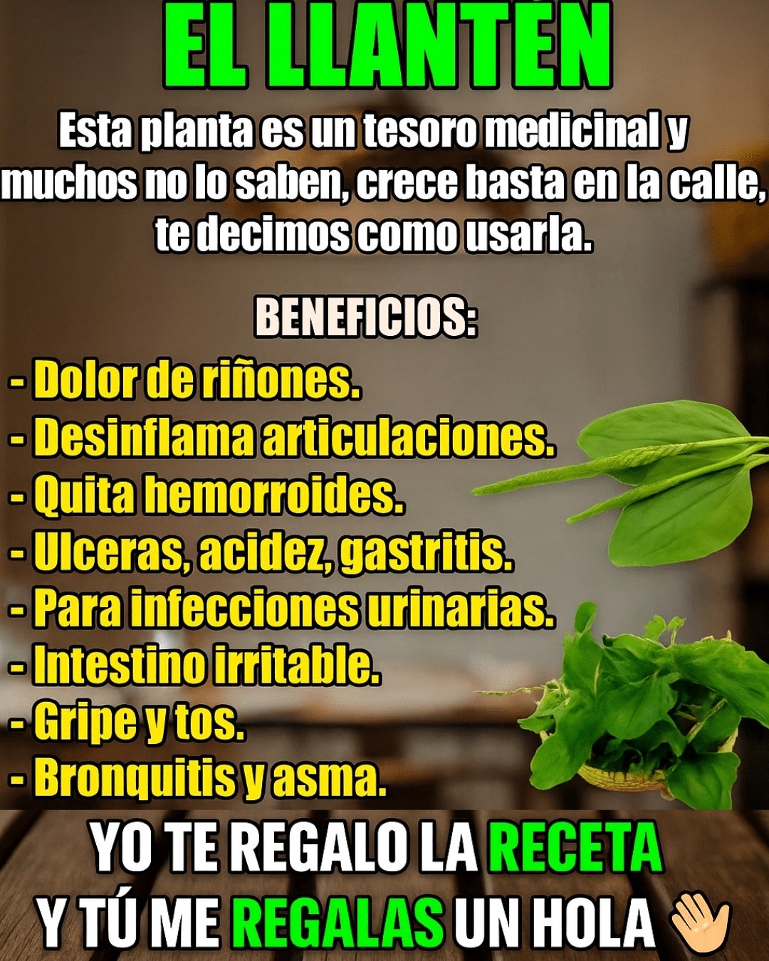 ¡Atención, Amigos de la Salud Natural! 🌿 ¿Sabías que existe una planta humilde, que muchos confunden con maleza, pero que en realidad es un gigante medicinal con propiedades asombrosas? Sí, estamos hablando del Llantén (Plantago major), un verdadero regalo de la naturaleza que ha sido utilizado por curanderos y herbolarios a lo largo de los siglos.