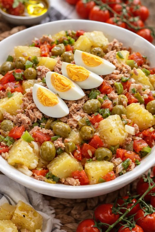El huevo duro  , tan humilde y versátil, era considerado un manjar en el antiguo Egipto. ¡Y mira tú por dónde! En el siglo XX, con la vida moderna y las prisas, alguien muy sabio decidió juntar estos ingredientes en una ensalada fresca, rápida, rica en proteínas y muy nutritiva… ¡Y así nació esta maravilla!