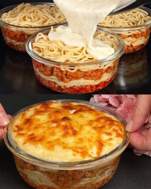 En un recipiente apto para horno, mezcla la pasta con la salsa de carne para que quede bien integrada. -