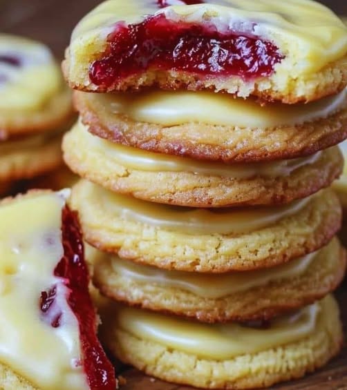 Deliciosas galletas con un toque cítrico y relleno de mermelada de cereza, perfectas para cualquier ocasión.