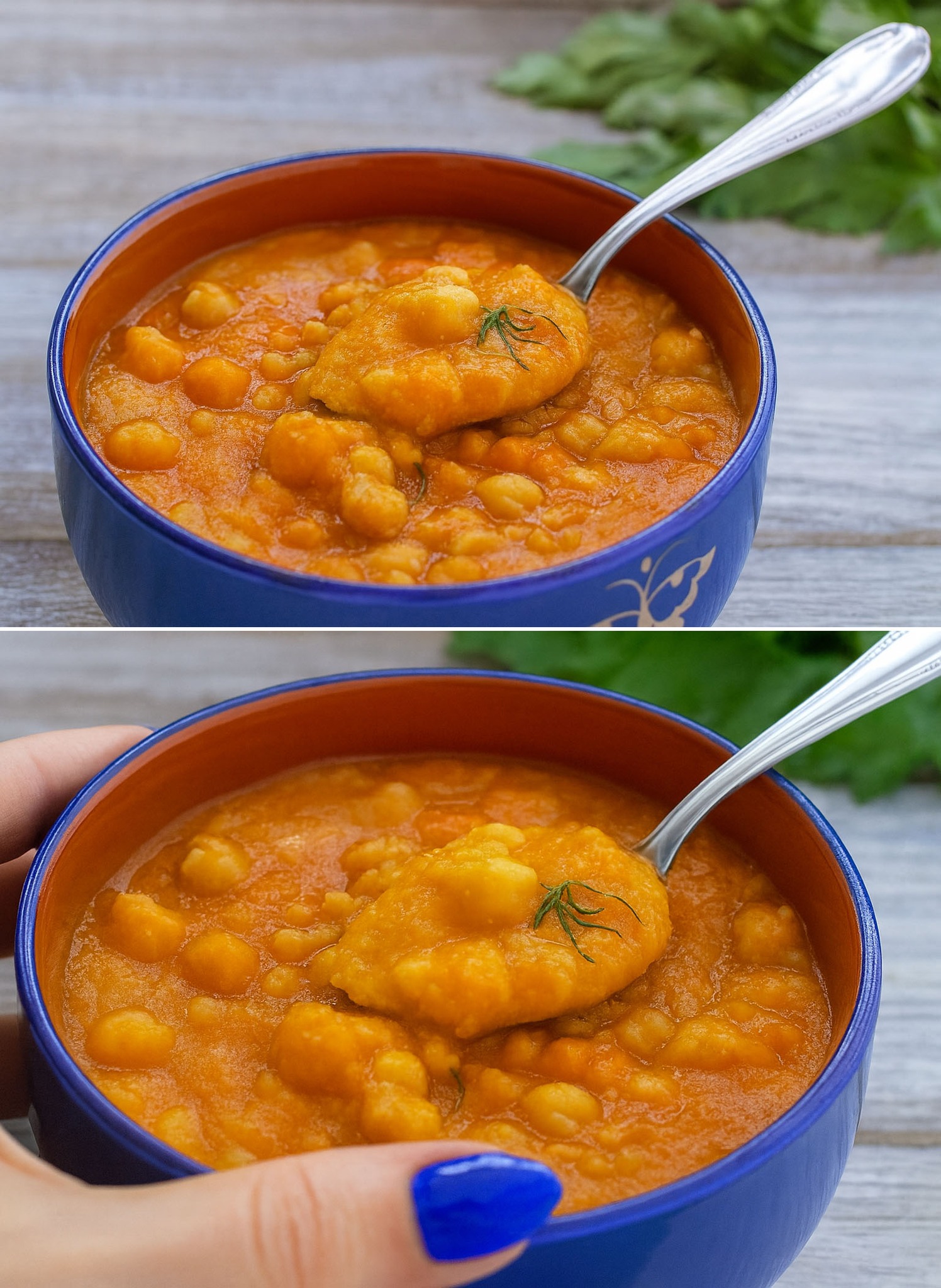 Cuando pienso en platos reconfortantes para los días fríos, la sopa de garbanzos y patatas es sin duda una de las primeras que me vienen a la mente. Es una receta sencilla, un plato tradicional campesino, pero lo tiene todo: simplicidad, sabor y nutrición. Prepararla significa llevar a la mesa un plato sano, que evoca el hogar y la familia, y que no requiere ni gran habilidad ni ingredientes sofisticados. Con solo unos pocos ingredientes —patatas, garbanzos, verduras y un poco de puré de tomate— una olla se transforma en un aroma que inunda toda la cocina.