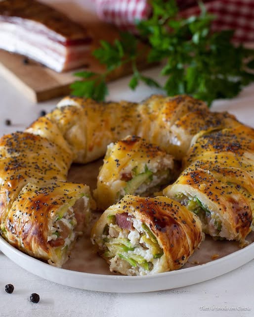 Hojaldre enrollado con ricotta y calabacín