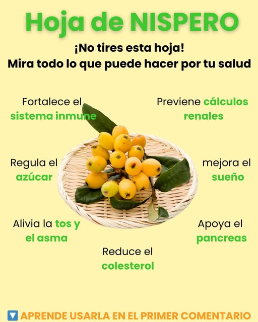 Las hojas de níspero han sido utilizadas durante siglos en la medicina natural por sus propiedades curativas. Esta planta, común en muchas regiones tropicales y subtropicales, no solo ofrece un fruto delicioso, sino también hojas con una amplia variedad de beneficios para la salud. Preparadas en infusión, estas hojas ayudan a fortalecer el sistema inmunológico, mejorar la digestión, controlar el azúcar en la sangre y proteger el corazón, entre muchos otros efectos positivos.