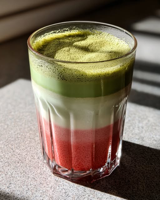 Una bebida refrescante y vistosa, perfecta para días cálidos o para disfrutar como capricho dulce. Combina el sabor herbáceo del matcha con la frescura de la fresa.