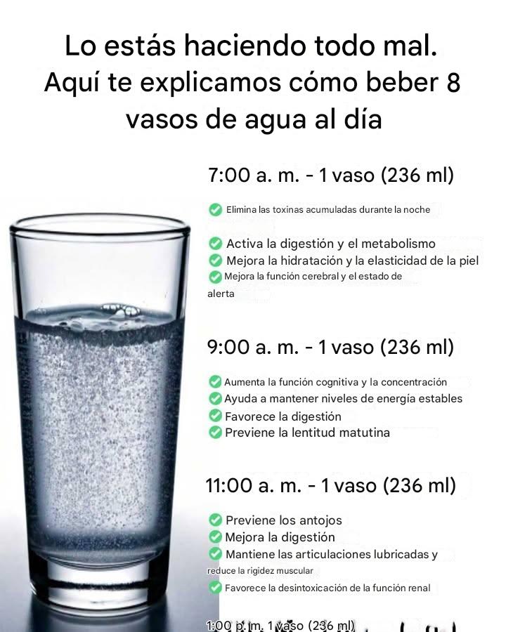 1. 7:00 a. m. – 1 vaso (8 oz)