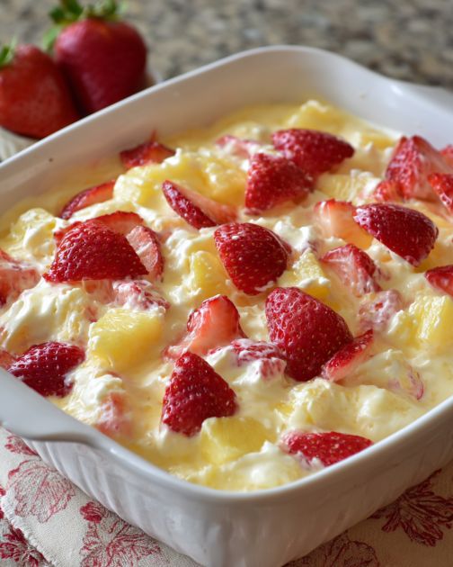La Delicia de Frutas Frías de la Abuela es un postre nostálgico que combina la cremosidad del queso crema y la crema batida con los vibrantes sabores de las frutas de verano. Esta receta tiene sus raíces en las clásicas ensaladas congeladas, populares a mediados del siglo XX, que solían servirse en reuniones familiares y ocasiones festivas. Es un postre perfecto para preparar con antelación y ofrece un refrescante respiro del calor del verano, ideal para picnics, barbacoas o festines festivos.