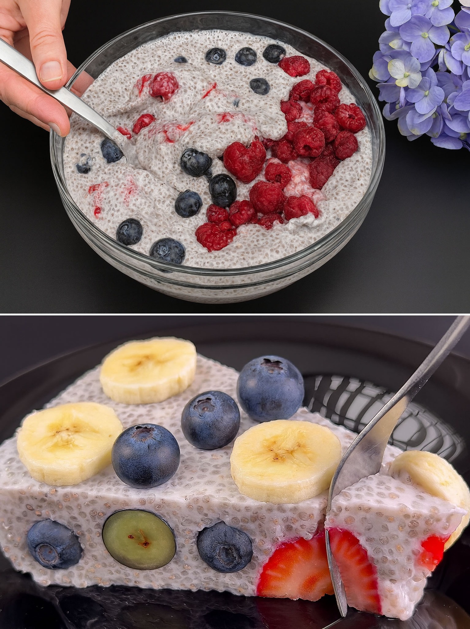 Un pastel que no parece un pastel (pero lo es): mi pudín de chía con fresas, frambuesas y arándanos