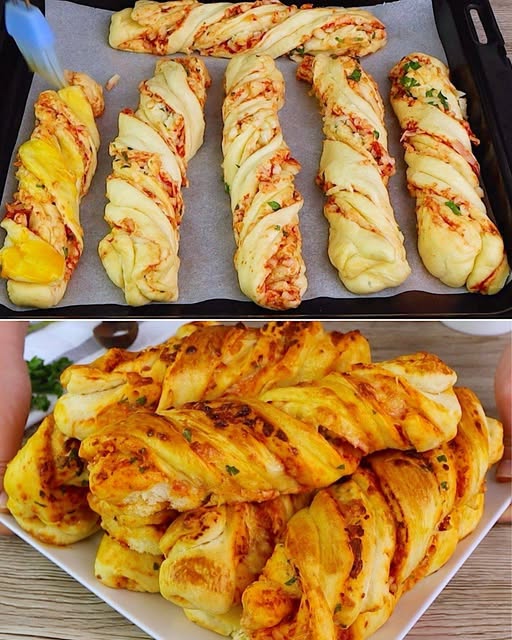 ¿Buscas un aperitivo original y lleno de sabor para tus reuniones, cenas familiares o picoteos entre amigos? Estos palitos de pizza retorcidos son una auténtica delicia: suaves por dentro, crujientes por fuera y con todo el aroma irresistible del queso, el tomate y el perejil. Una receta sencilla que combina la magia de la masa casera con los sabores clásicos de la pizza italiana.