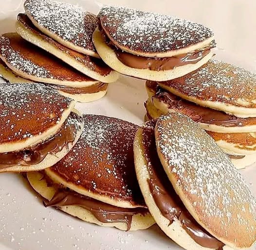 Coloca una pieza de chocolate entre dos pancakes para formar el relleno.