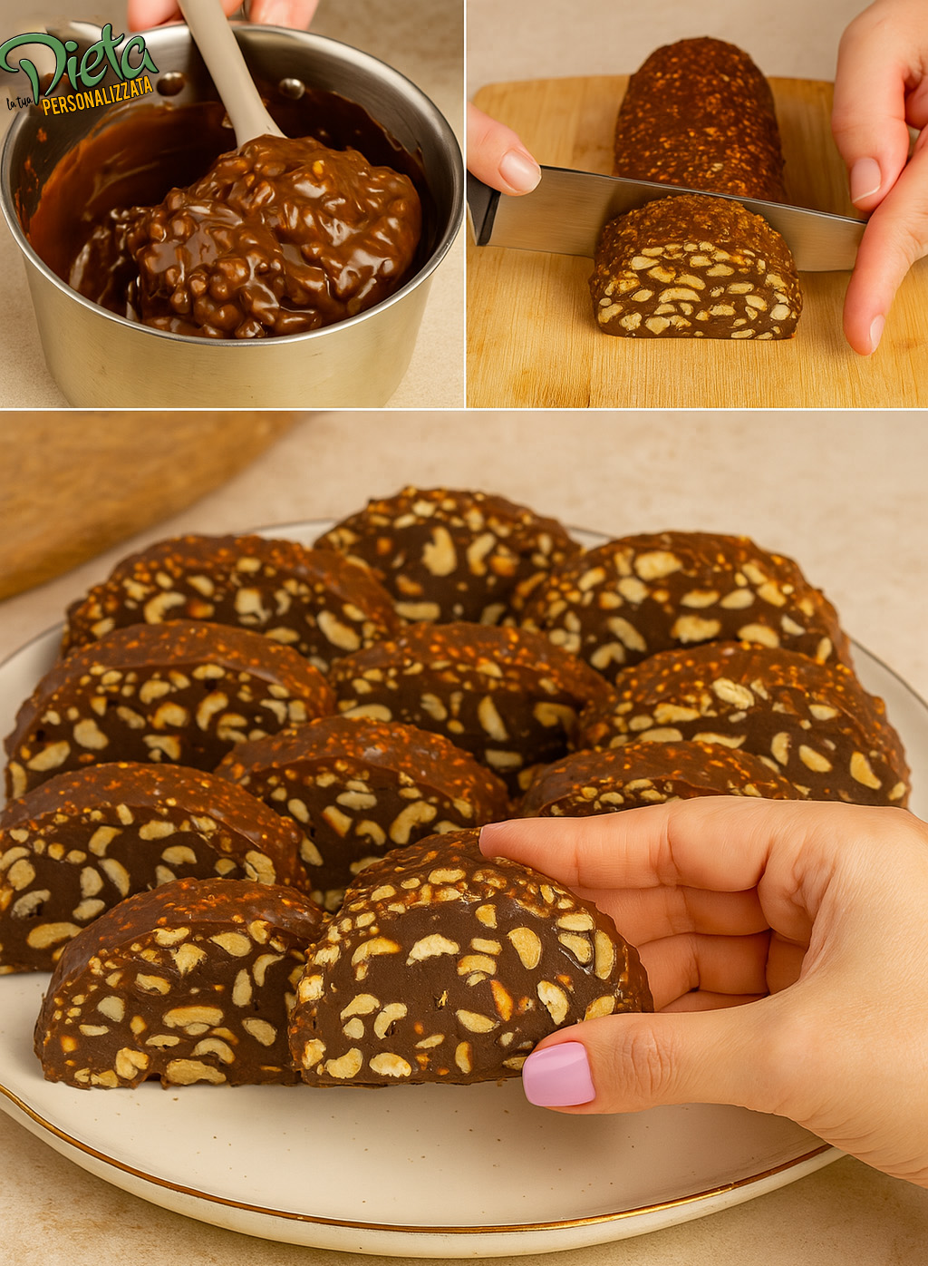 Un salami de chocolate que no te arruinará el día: sin azúcares refinados y con ingredientes de verdad. Salami de Chocolate Ligero