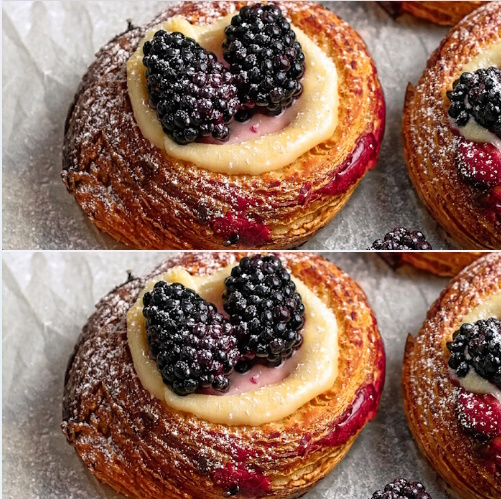Hojaldre de hojaldre con queso crema de vainilla y cuajada de moras