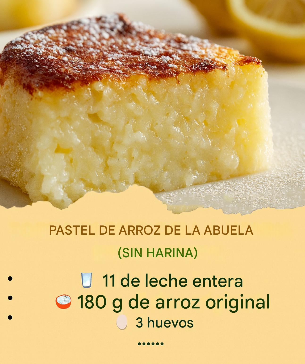 Es un pastel sencillo, en el mejor sentido de la palabra: hecho con ingredientes que casi siempre tienes en casa, pero con un resultado sorprendente. Suave por dentro, ligeramente dorado por fuera, con una textura que no es ni pudín ni pastel clásico, sino algo único. Y lo mejor es que no lleva harina: solo arroz y leche, que juntos crean magia.