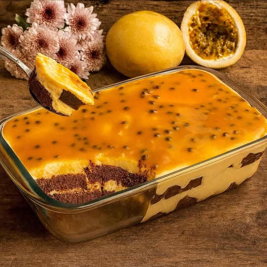 El intenso sabor del chocolate se equilibra con la frescura tropical del maracuyá, dando como resultado un postre suave, cremoso y absolutamente irresistible.