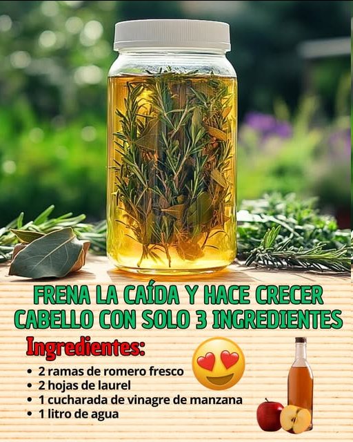 El laurel aporta propiedades calmantes y nutritivas, mientras que el vinagre de manzana potencia el brillo y la salud general del cabello.