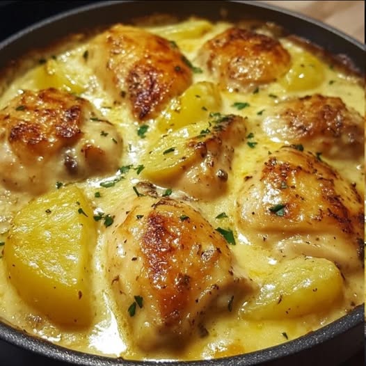 Un plato delicioso y reconfortante que combina pollo jugoso con patatas tiernas, todo bañado en una cremosa salsa de queso cheddar. Ideal para comidas familiares o cenas especiales.