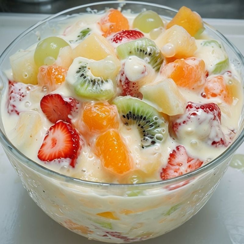 La ensalada de frutas es un postre fresco, nutritivo y súper fácil de preparar. Perfecta para los días calurosos, combina el dulzor natural de las frutas con el toque cremoso de la leche condensada y un ligero aroma a canela. ¡Una delicia que encanta a grandes y pequeños! 🥰🥛🥝🍓