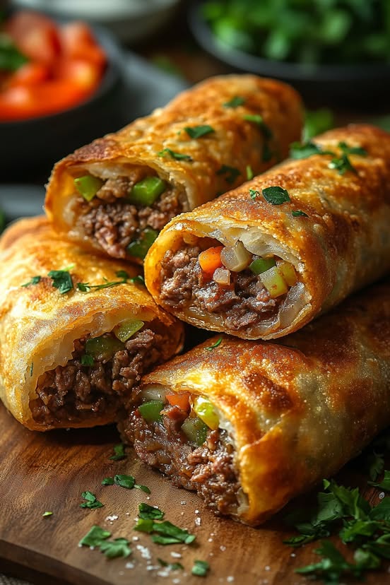 Receta de rollitos de huevo rellenos de hamburguesa con queso