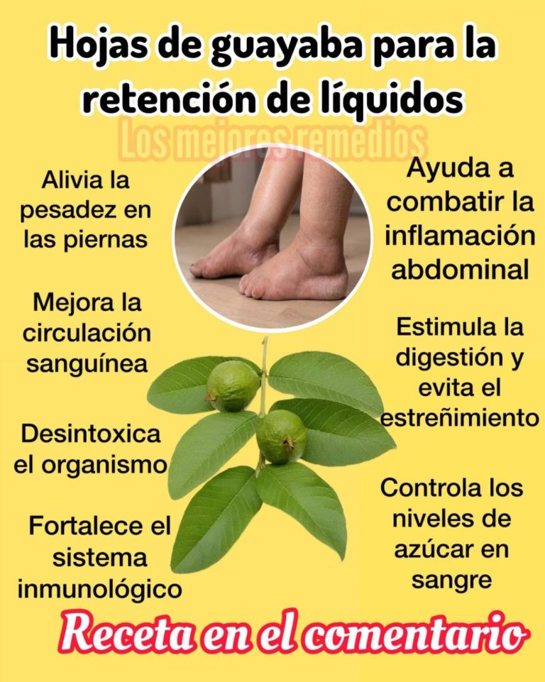 Elimina la retención de líquidos , gracias al efecto diurético de las hojas de guayaba.
