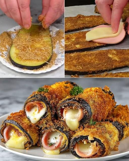 Si buscas una receta sencilla, sabrosa y con un resultado irresistible, estos rollos de berenjena rellenos de jamón y queso serán tu nueva opción favorita. Su textura crujiente por fuera y su interior derretido con queso y jamón los convierte en un bocado ideal para compartir en familia o sorprender a tus invitados.Además, son muy versátiles: puedes servirlos como entrante, aperitivo o incluso como plato principal acompañado de una ensalada fresca. Lo mejor es que no necesitas ingredientes complicados y el resultado siempre es espectacular. 😋