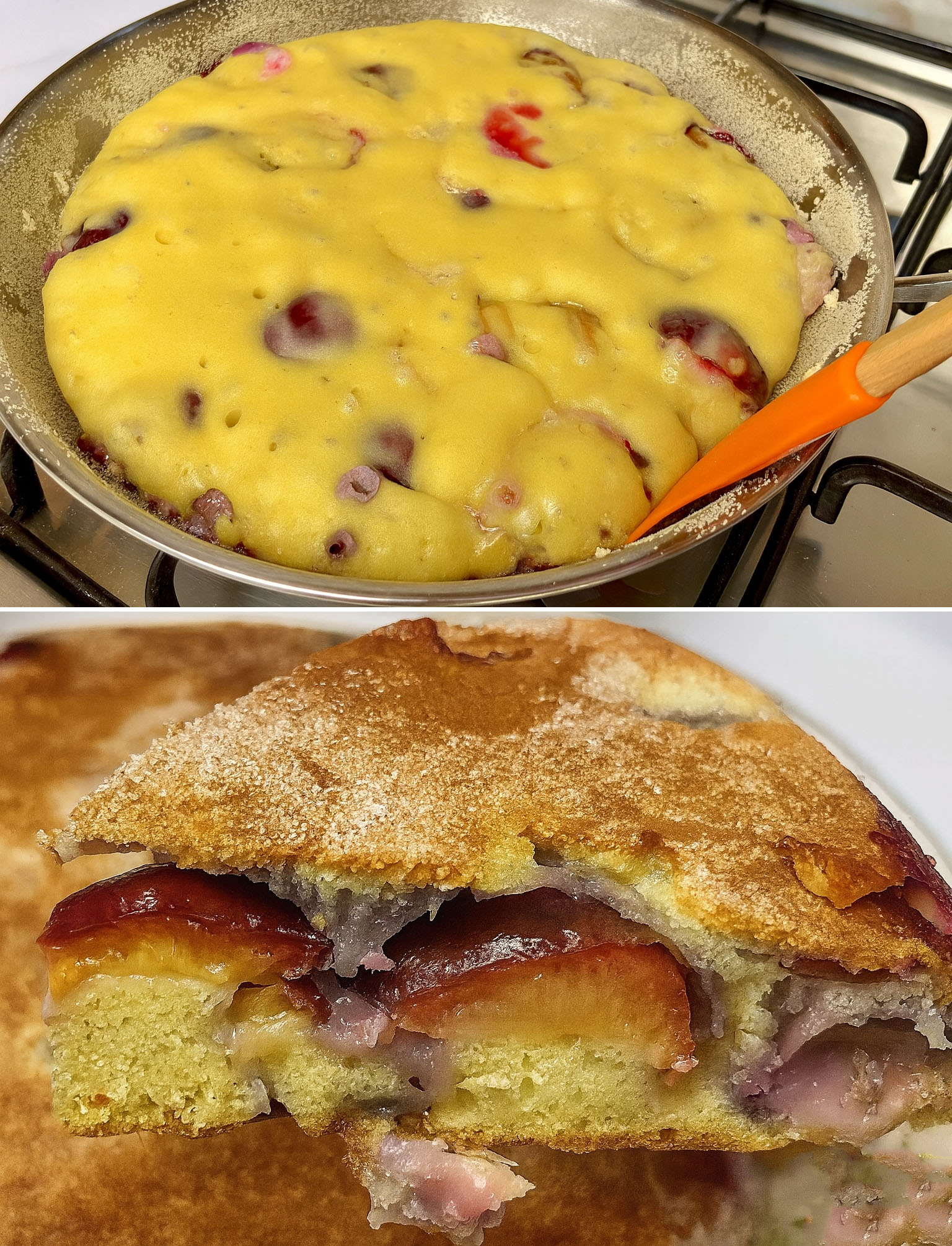 Pastel de ciruelas frito en sartén: Suave, ligero y listo sin horno
