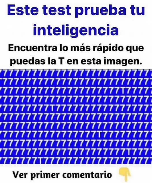Realiza este test con nosotros para que pruebes tu inteligencia, solo debes encontrar lo más rápido que puedas la T en esta imágen