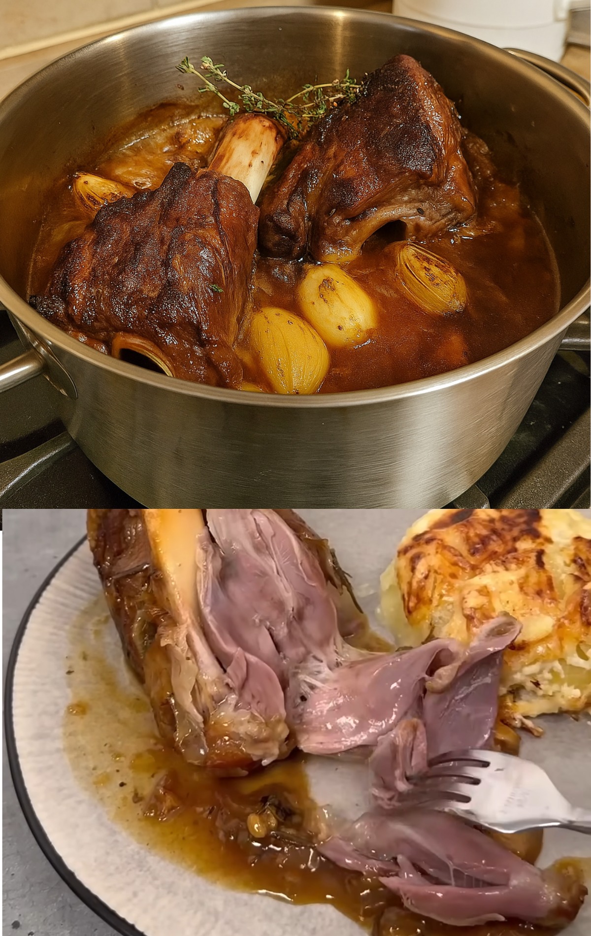 Ajoutez l’ail écrasé dans la cocotte. Couvrez et enfournez à 150 °C pendant 2 h 30 à 3 h. Retournez les souris toutes les 30 minutes pour une cuisson uniforme et savoureuse.