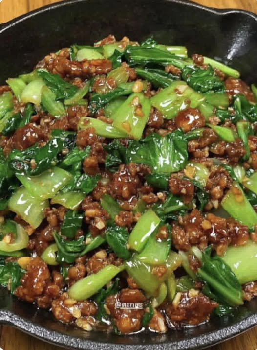 This is a quick and flavorful Filipino-inspired stir-fry with tender Bok Choy and savory ground meat.