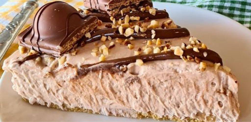 Para un molde desmontable de 22/24 cm: Base: 250 g de galletas secas, 100 g de mantequilla. Nata: 500 g de mascarpone, 300 g de queso crema, 80 g de nata fresca, 40 g de azúcar glas, 100 g de crema de avellanas. Decoración: avellanas picadas al gusto, crema de avellanas al gusto, 6/7 barritas de avellanas.