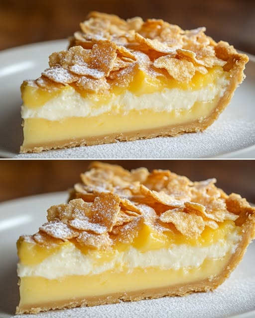 Transpórtate a una soleada cocina mediterránea con esta tarta de crema de limón deliciosamente única. Esta receta combina brillantemente la acidez de los limones frescos con un relleno de natillas sedosas, todo ello envuelto en una tierna corteza con aroma a vainilla y cubierto con crujientes copos de maíz para darle un toque de textura inesperado. Esta versión moderna de la clásica tarta de limón surgió de la tradición de la pastelería francesa, pero incorpora elementos divertidos que la hacen sofisticada y accesible.