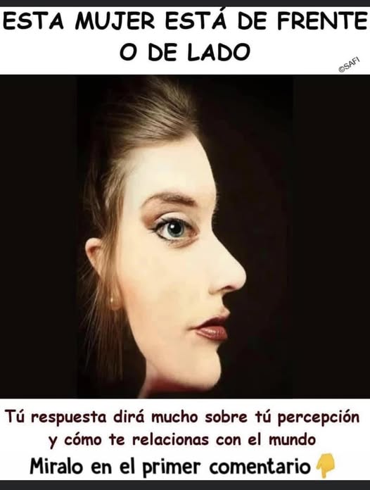 Mira la imagen y dinos lo que ves. ¿La mujer está de frente o de perfil? No es necesario analizar mucho, sólo debes tomar en cuenta tu primera impresión. ¡Esa es la que vale! ¿Ya tomaste una decisión? Muy bien… aquí van las características de tu personalidad, de acuerdo a lo que hayas visto.