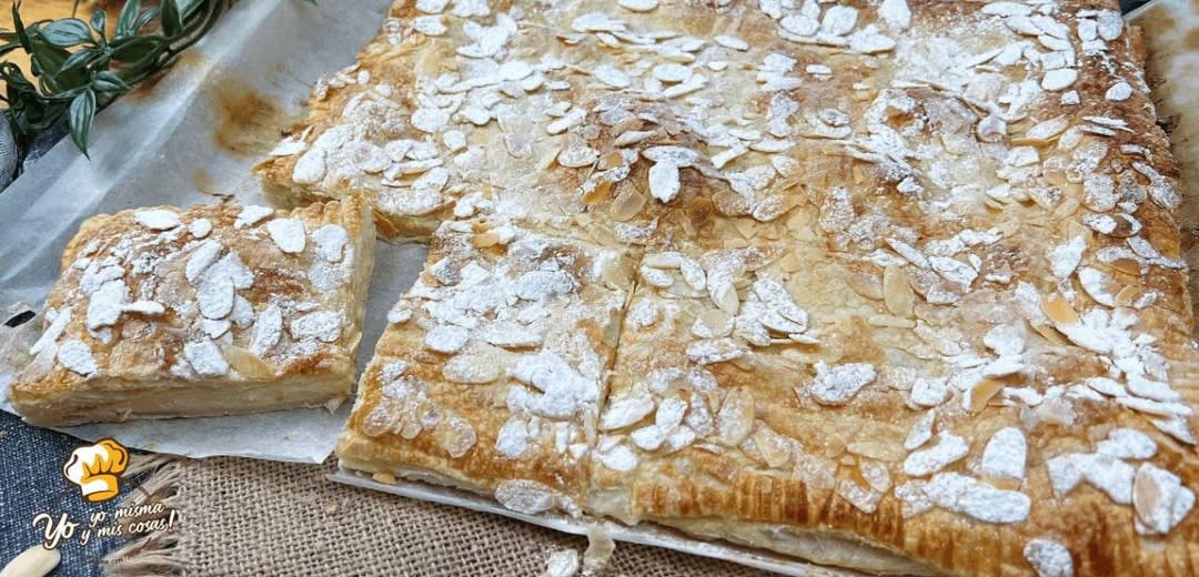 Hoy os dejo esta receta de torta de hojaldre con almendras y crema de lo mas deliciosa.