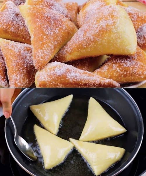 Súper suaves, doraditos y cubiertos de azúcar… ¡estos triángulos de pan frito esponjosos son una tentación imposible de resistir!