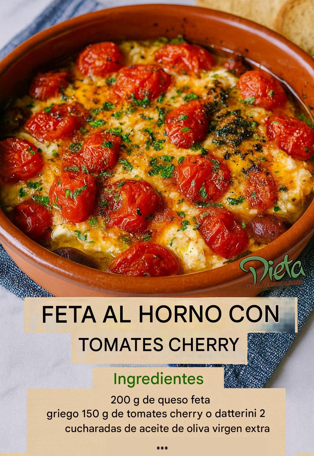 Se prepara en 5 minutos con 5 ingredientes que casi siempre tengo en casa, se hornea y todo se hace solo. El queso (el feta) se vuelve cremoso, los tomates cherry se caramelizan y todo queda perfecto para disfrutar con una rebanada de pan tostado. Es ligero pero delicioso, rústico y fresco. Excelente como plato principal vegetariano, pero también como aperitivo o plato principal de verano para compartir. Y te diré la verdad: cuanto más simple, más me gusta. Feta al horno con tomates cherry: pocos ingredientes, mucho sabor (y la cena está lista en 20 minutos)